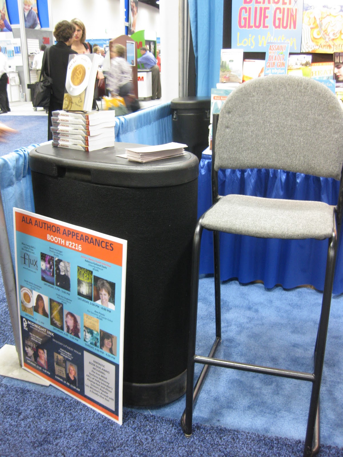 I don’t want to overplay this, as it was mainly a blur and went by surprisingly quickly. But I felt it was notable enough to mention—especially since I ended up meeting a couple of really awesome writers I’d been hoping to talk to in person: Cindy Pon (Silver Phoenix, Fury of the Phoenix) and Robin “R.L.” LaFevers (the Theodosia books). So many of the wonderful fellow bloggers I talked to the previous night came, too. I’m really grateful to everyone who stopped by, and I’m especially grateful to the folks at Flux and Llewellyn who set it up, manned the booth and kept me company when the signing line died down. And my mom and stepdad made it, which was fantastic. I still felt sorta like maybe there were people who didn’t assume that I was actually the author but instead some sort of nicely-dressed booth attendant, but oh well.