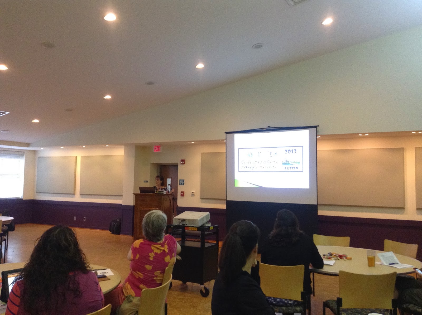 There may only be a Part I, actually. I should probably self-flagellate back into my Work Cave of Exile for the next 2 weeks, and in fact, it’s possible you may only see me briefly after this until Nov. 25, the Deadline Date of Doom. (Yes, I like giving things dramatic titles.) However, I did want to post some pictures from KidLitCon Austin this weekend while I’m still riding high on the fabulousness of having gotten together with my blogging kindred spirits to compare notes on two of our favorite things: kidlit, and sharing kidlit.